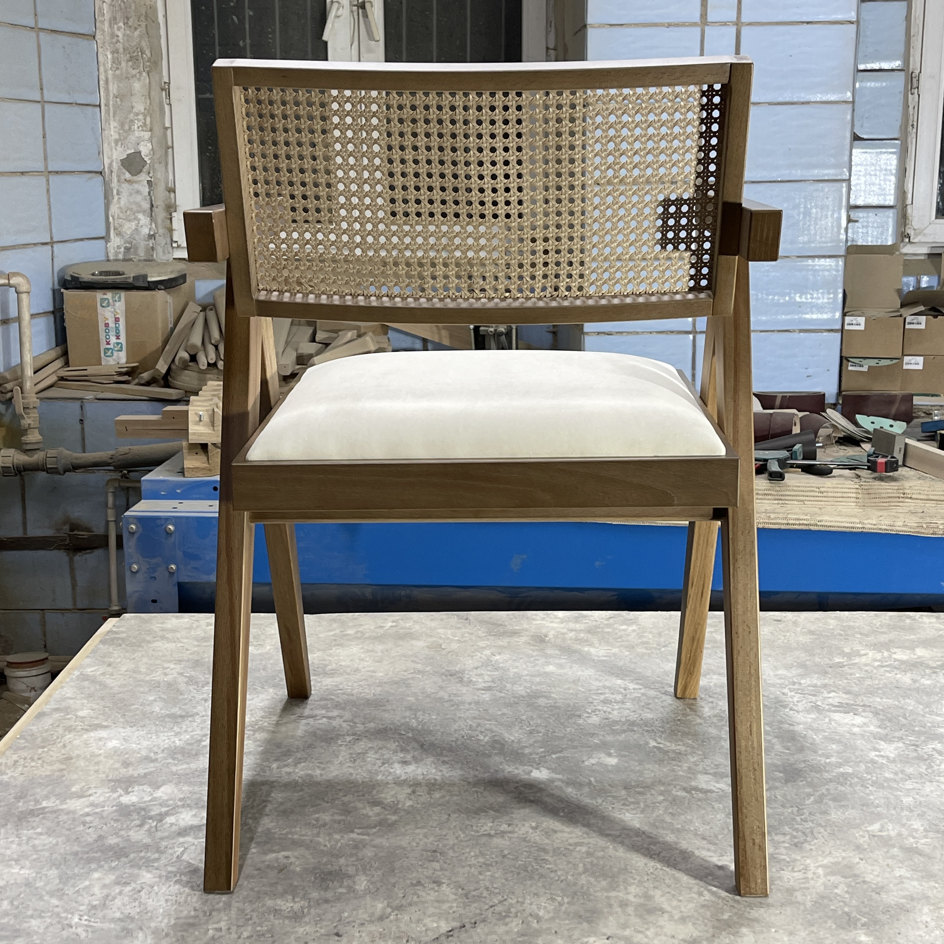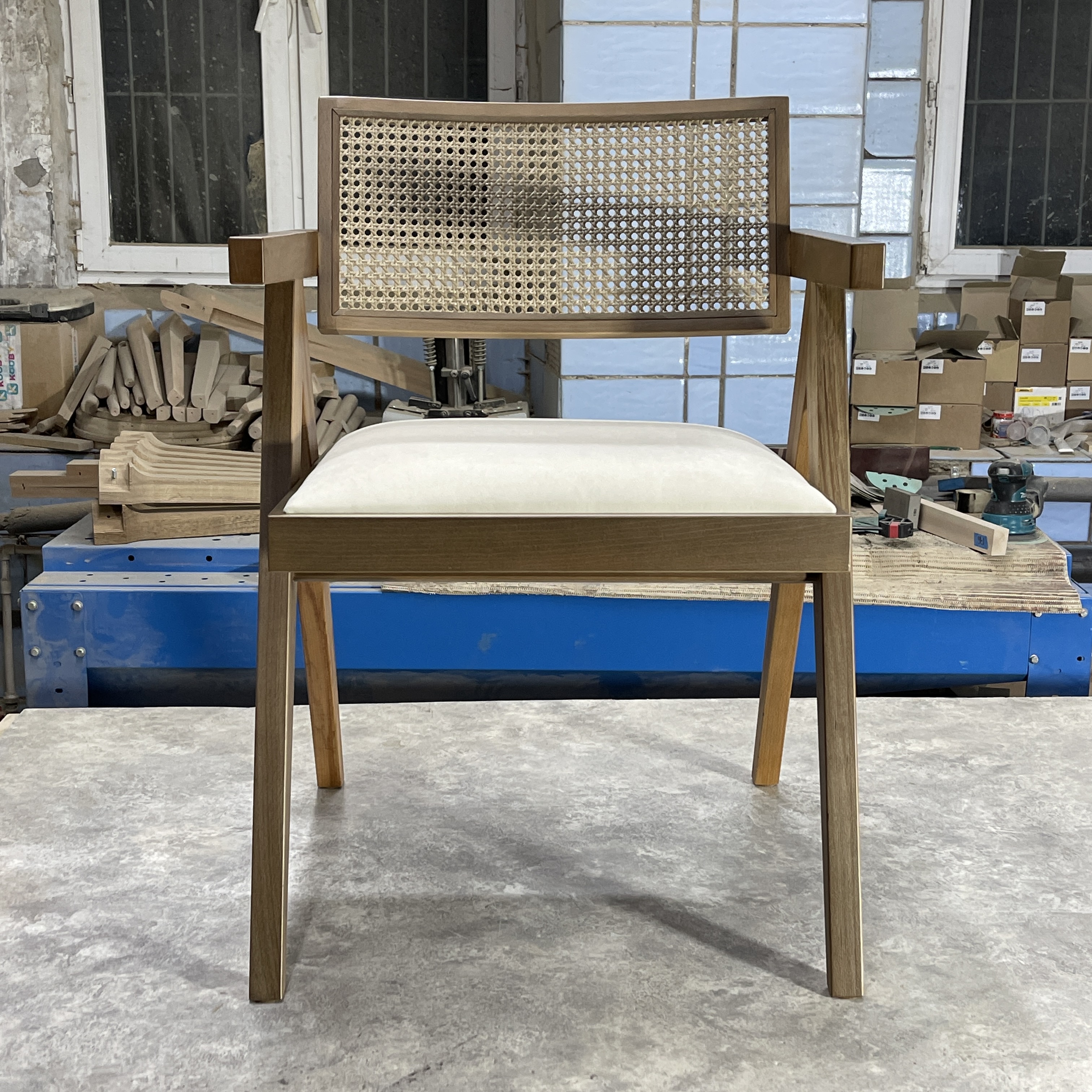 Квадратное сиденье формирует устойчивую, визуально сбалансированную основу, обеспечивая комфортную посадку. Квадратная спинка поддерживает концепцию геометрической целостности и создает лаконичный, архитектурный силуэт. Подлокотники органично интегрированы в конструкцию, добавляя ощущение уюта и комфорта.